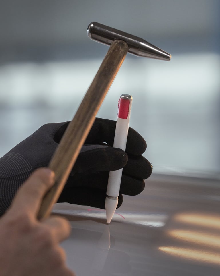 Dellen am Fahrzeug? Mit speziellen Werkzeugen bringen wir die beschädigte Stelle durch sanftes Drücken oder Ziehen von innen heraus in ihre ursprüngliche Form zurück.